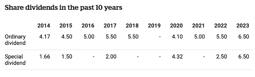 Negli ultimi 10 anni – saltando solo il periodo del Covid-19 su raccomandazione delle autorità bancarie – Svenska ha distribuito circa il 50% degli utili ai propri azionisti in forma di dividendi, passando da un dividendo per azione di 4,17 SEK del 2014 a 6,50 SEK del 2023. La politica di dividendi della banca prevede anche l’erogazione di dividendi speciali in caso di utili eccedenti le esigenze di supervisione bancaria, a volte in misura anche molto sostanziosa.