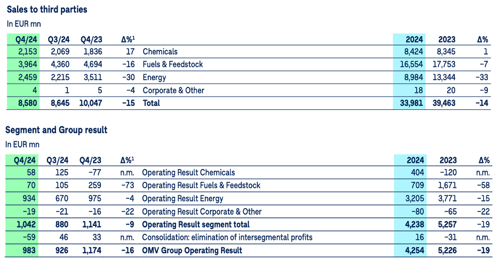 OMV detiene il 75% di proprietà di Borealis, un importante produttore europeo di poliolefine, rendendo i prodotti chimici un motore di crescita chiave a lungo termine.