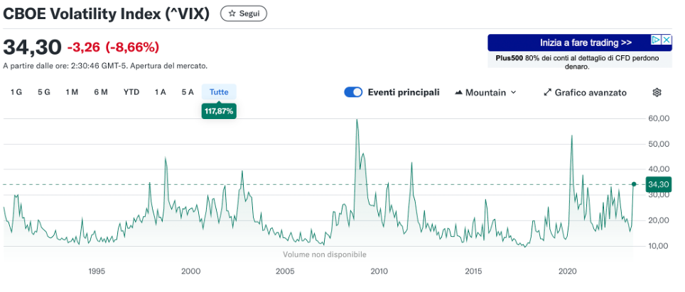 Un valore superiore a 30 segnala alta volatilità e un forte livello di incertezza o panico.